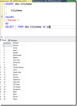 A short while later I open a query window to do something related and check my data. I don’t see it.