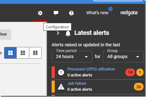 If you click the gear icon in the upper right of Redgate Monitor, you’ll go to the configuration screen.