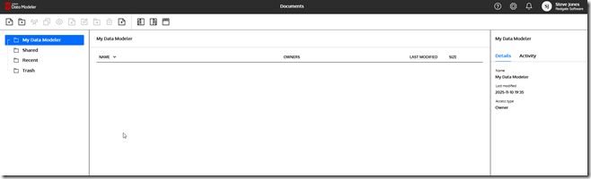 If I click on the Data Modeler icon in the upper left, I go back to the main screen with my model listed in the middle. I can see this is a logical model based on the icon.