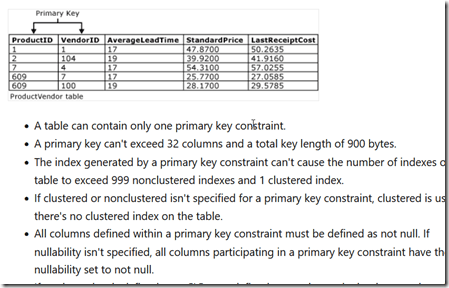 Someone posted a note about multi-column primary keys, noting that the docs said we could use up to 16 columns, but they were able to do 17. I went to this page, Primary and Foreign Key Constraints , where in the first bullet list, there was a 16. This was the week of 24 Nov.