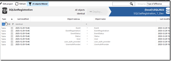 As with the last article, everything was in sync with SQL Compare. You can see this below.
