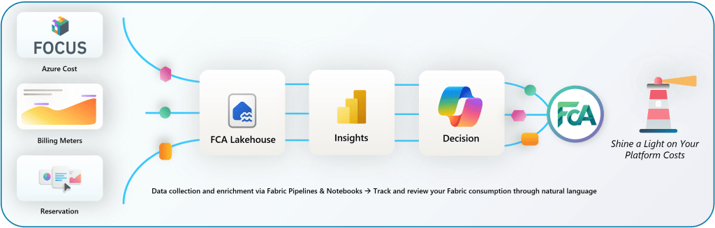 FCA gathers a variety of data and loads it into your Fabric Lakehouse to analyze costs from multiple angles. The key inputs include: