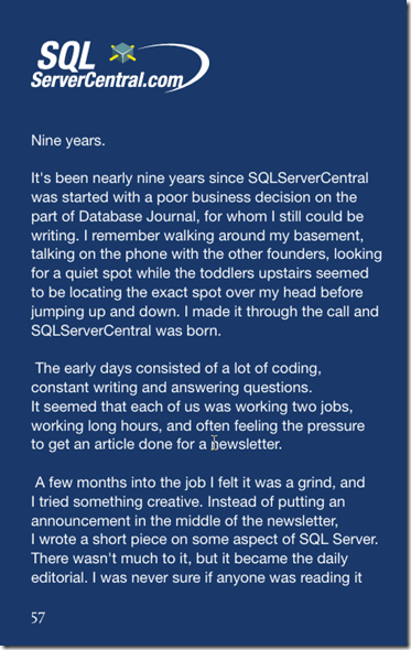 It was neat to stumble on this in the book, a piece by me, just a few years after Redgate acquired SQL Server Central. I’ll let the words speak for themselves.