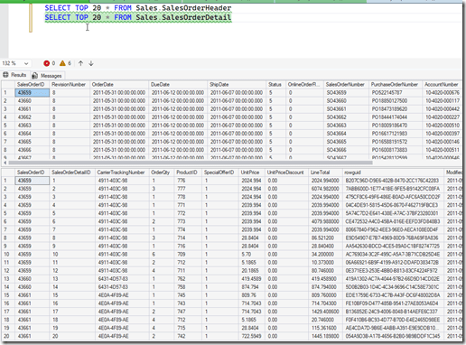 Imagine you’ve never used these functions, but you need to rank some data. Let’s say that you have a series of things that measure sale and you want to know who has done the best job this week. I’ll start with AdventureWorks, and we’ll assume it’s June 2011. If I look at some data from that database, I see this. Order Headers and Order Details from that range.
