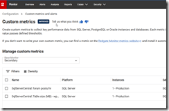 We are enhancing and adding to Redgate Monitor every week, but there are always more things that many of you want, and custom metrics give you the ability to choose what you want to monitor.