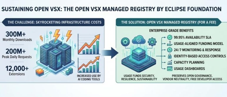 Designed to run in multiple regions, the Open VSX Managed Registry provides enterprise-grade reliability and accountability while preserving open governance, vendor neutrality, and free access for developers, said Mashologu. The usage-aligned model ensures commercial consumption funds the operational investment required to keep Open VSX secure, resilient, and sustainable, he added